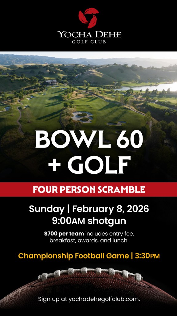The Bowl 60 Scramble is back! Join us on February 8th for our annual four person scramble that includes entry, prizes, breakfast before play and lunch after play. Get together with friends before the big game and play some golf! $700 per team. 9am shotgun start.